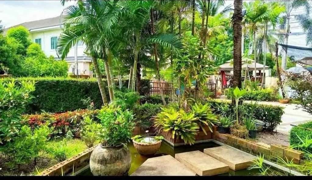 This luxury detached house in Tareena Village, a quality development in a prime location, boasts a spacious and shady area. The house is designed to accommodate large families. It features a fully functional Thai and Western kitchen, as well as a maid's room with an ensuite bathroom, providing a comfortable and convenient living experience.