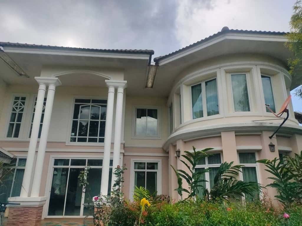 Luxury detached house for sale in Tareena Village, Chiang Mai, on a large 305 sq wah plot of land. This house features 4 bedrooms, 5 bathrooms, a maid's room, and a Thai-Western kitchen.