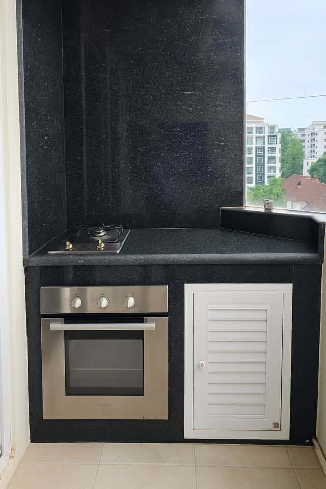 ครัวพร้อมเตาอบ, เตาแก๊ส 2 หัว, ไมโครเวฟ, เครื่องปิ้งขนมปัง และกาต้มน้ำไฟฟ้า