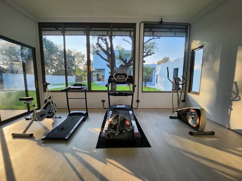 ห้องสตูดิโอ และยิม (84 ตร.ม.) มีตู้บิวท์อินพร้อมเคาน์เตอร์หินแกรนิต พื้นที่เก็บของ พร้อมอ่างล้างหน้า และทางเข้ายิมแยกต่างหากอีกด้วย อาคารนี้สามารถแปลงเป็นที่ทำงาน หรือบ้านสำหรับแขกเพิ่มเติมได้อีกด้วย
