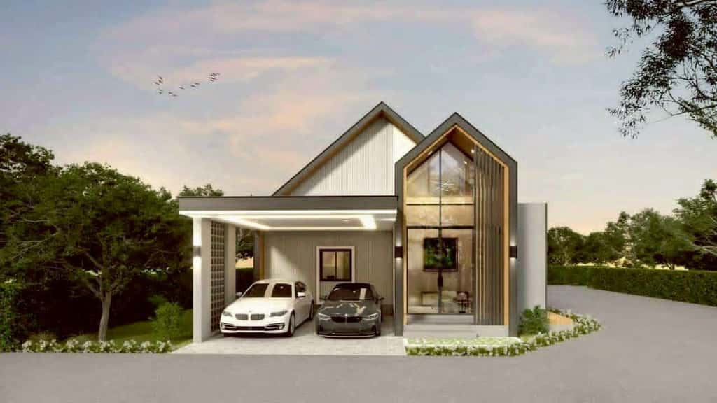 ที่ดิน 45 ตรว. พื้นที่ใช้สอย 137 ตรว. แบบบ้านนอร์ดิกทรงจั่วหลังคาสูง