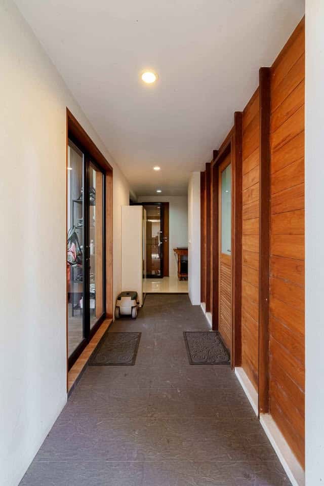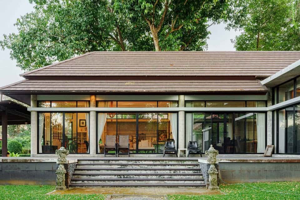อยู่ในพื้นที่ดินขนาด 384 ตร.วา บรรยากาศเย็นสบายบ้านออกแบบให้เข้าและกลมกลืนกับต้นไม้ แบบชั้นเดียว