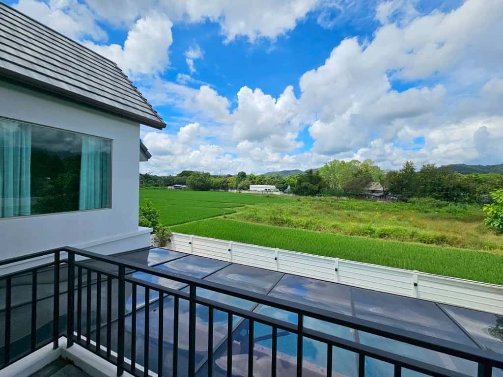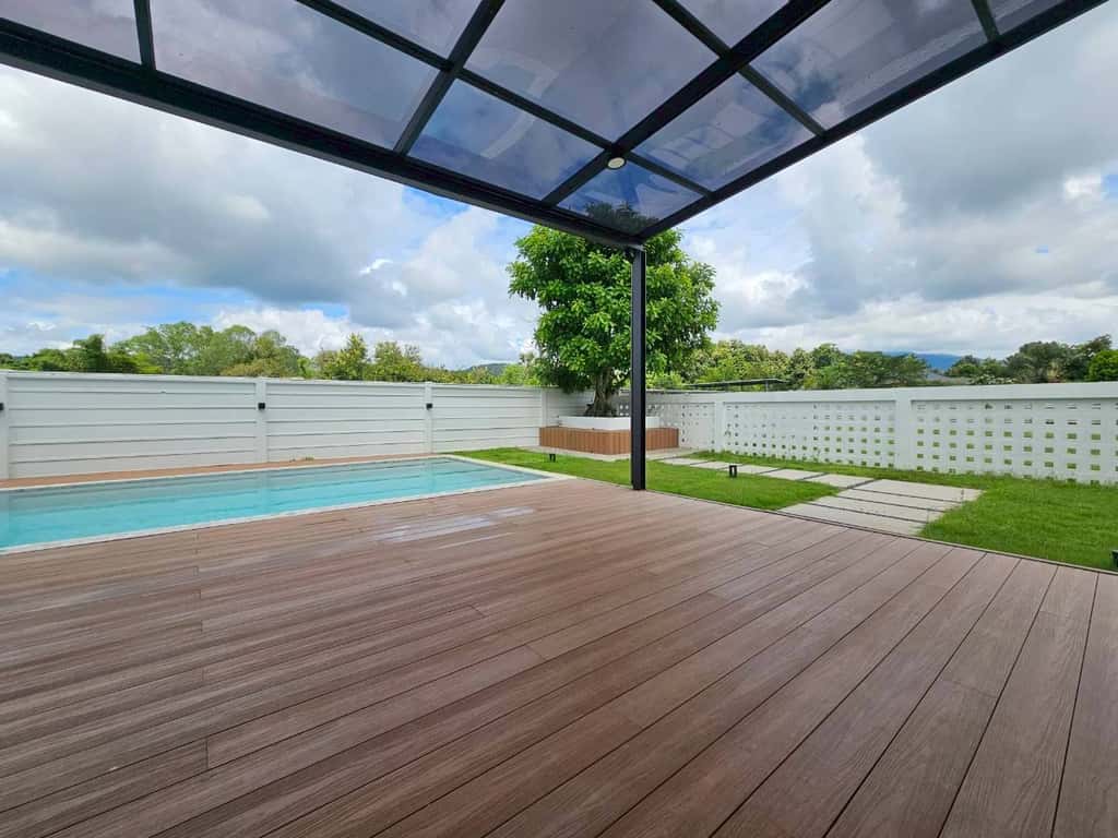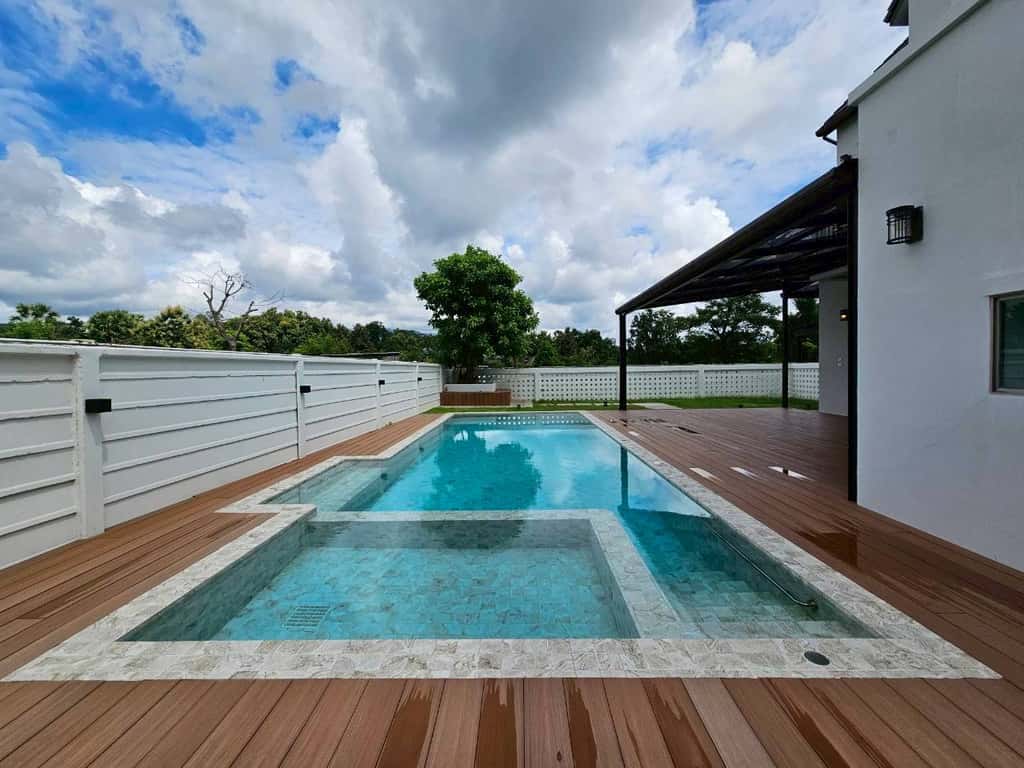 หลังนึงมีสระว่ายน้ำขนาด 6 * 12 อีกหลังจะเป็นแนวญี่ปุ่นมีน้ำตก