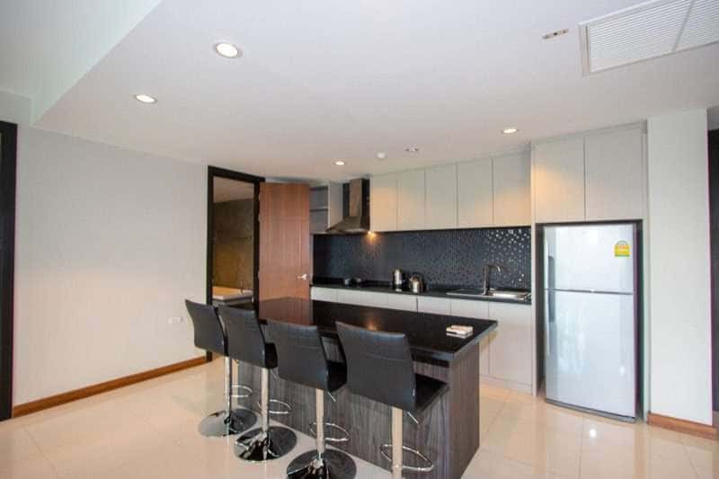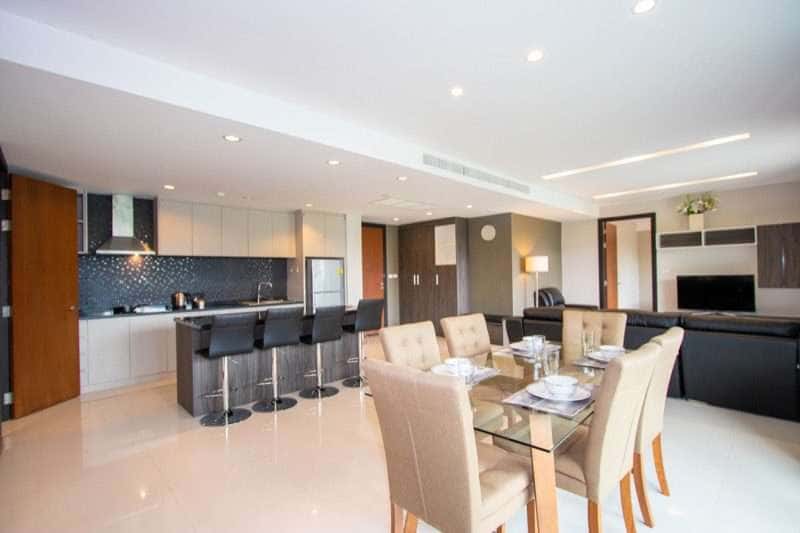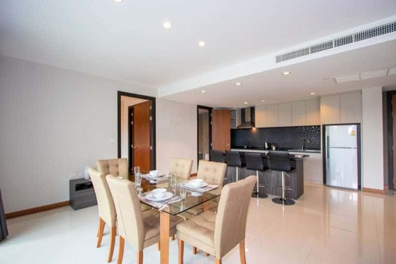 ห้องชุดขนาด 149.31 ตารางเมตร ออกแบบพื้นที่กว้างขวาง ประกอบด้วย 2 ห้องนอน 2 ห้องน้ำ พร้อมห้องนั่งเล่นและพื้นที่รับประทานอาหารเชื่อมต่อกันอย่างลงตัว ครัวสไตล์ตะวันตกตกแต่งครบ มีเตาเซรามิก เครื่องดูดควันแบบปล่อง ตู้เย็นขนาดใหญ่ และไอส์แลนด์กลางห้องที่สามารถใช้เป็นมุมทำอาหารหรือโต๊ะทานอาหารเช้าได้อย่างสะดวกสบาย