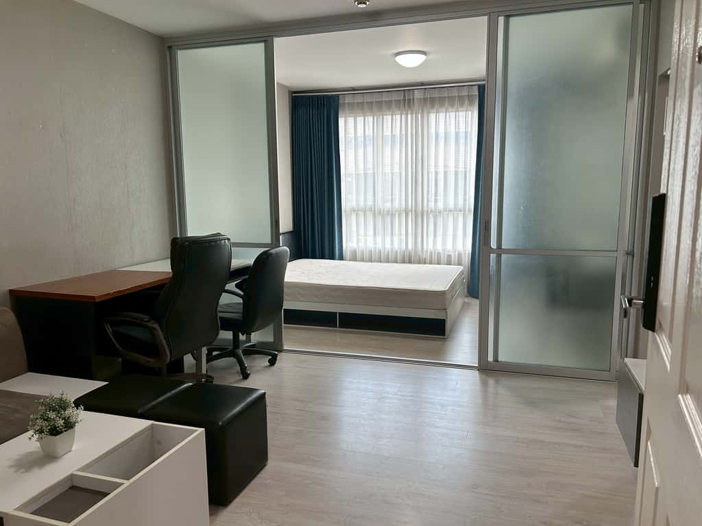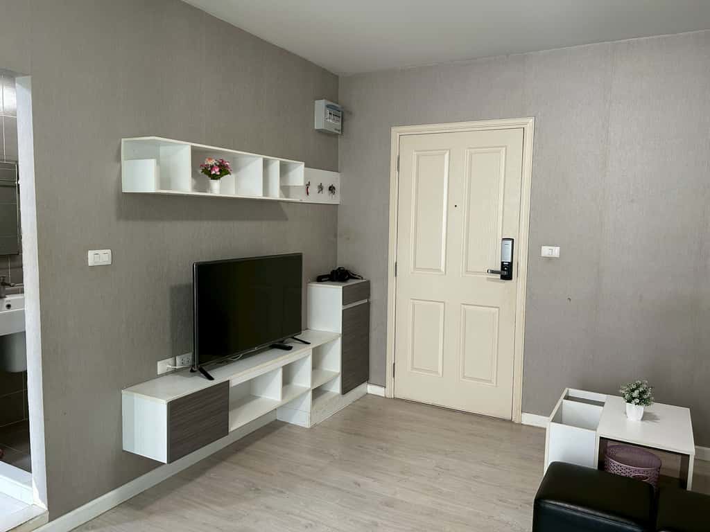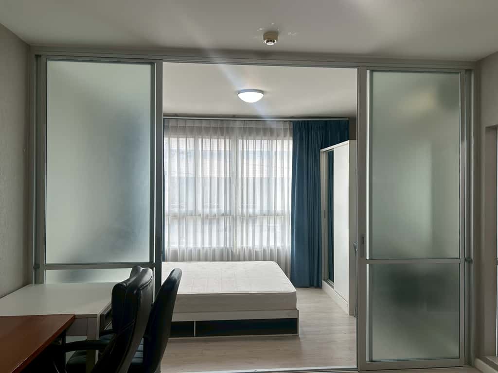 คอนโดขนาด 30 ตารางเมตร ตั้งอยู่บนชั้น 3 อาคาร D ฟังก์ชันครบ ประกอบด้วย 1 ห้องนอน 1 ห้องน้ำ และ 1 ห้องครัวแยกเป็นสัดส่วนด้วยประตูกั้น ทำให้กลิ่นอาหารไม่รบกวนตัวห้องพัก ภายในตกแต่งพร้อมเข้าอยู่ทันที พร้อมเฟอร์นิเจอร์และเครื่องใช้ไฟฟ้าครบ เช่น แอร์ เตียง ตู้เสื้อผ้า โซฟา โต๊ะ ตู้เย็น ไมโครเวฟ เครื่องทำน้ำอุ่น และโทรทัศน์ เหมาะสำหรับผู้ที่ต้องการความสะดวกสบาย และนักลงทุนที่ต้องการปล่อยเช่าให้กลุ่มพนักงานออฟฟิศ หรือนักศึกษา