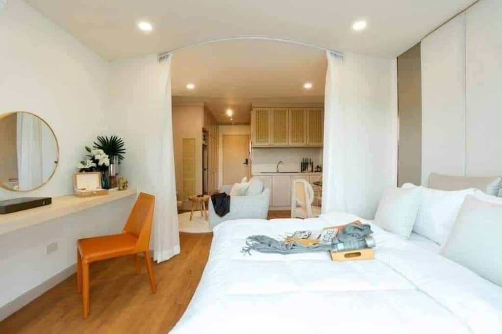 - ห้องสตูดิโอ (มีม่านกั้นโซนห้องนอน)
