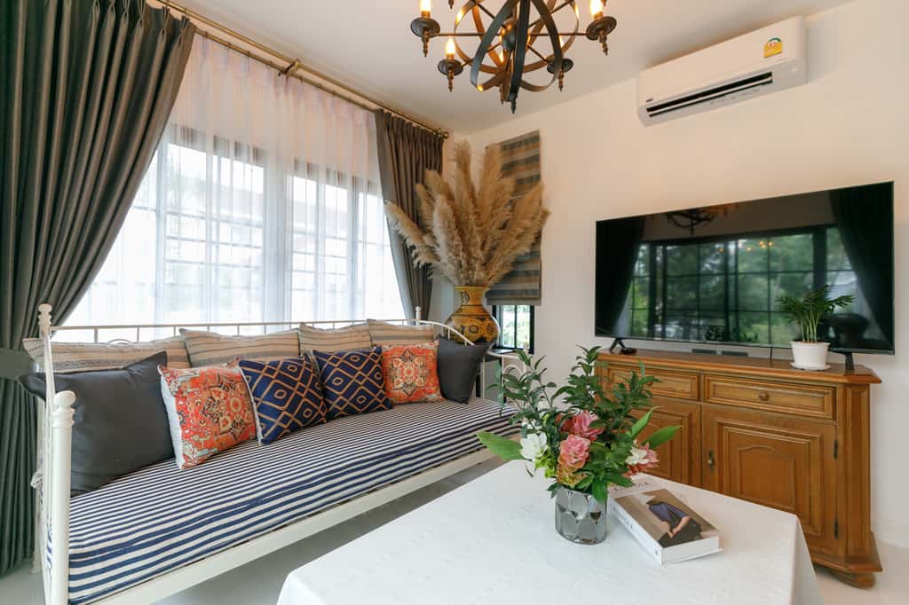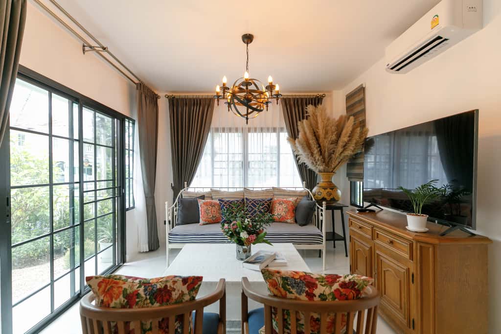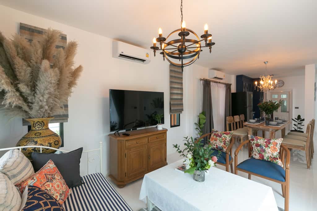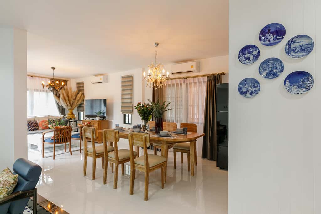 มีมุมพักผ่อนชมสวน มุมรับแขก โต๊ะอาหาร และสวนครัวหลังบ้าน