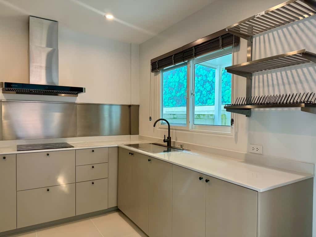 - ครัวฝรั่งพร้อมฮูดดูดควัน, เตาไฟฟ้า, เตาอบ+ไมโครเวฟฝังตู้