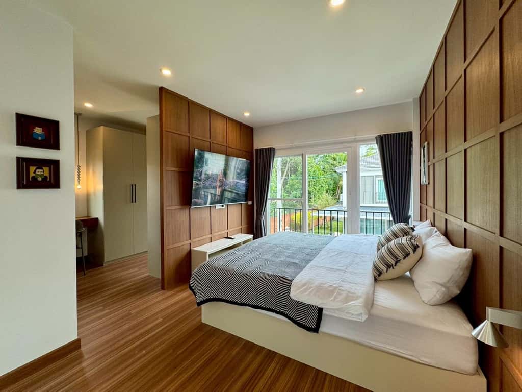 - เตียง 6 ฟุต, ทีวี 65 นิ้ว, Walk-in Closet, โต๊ะเครื่องแป้ง, แอร์ 1 ตัว