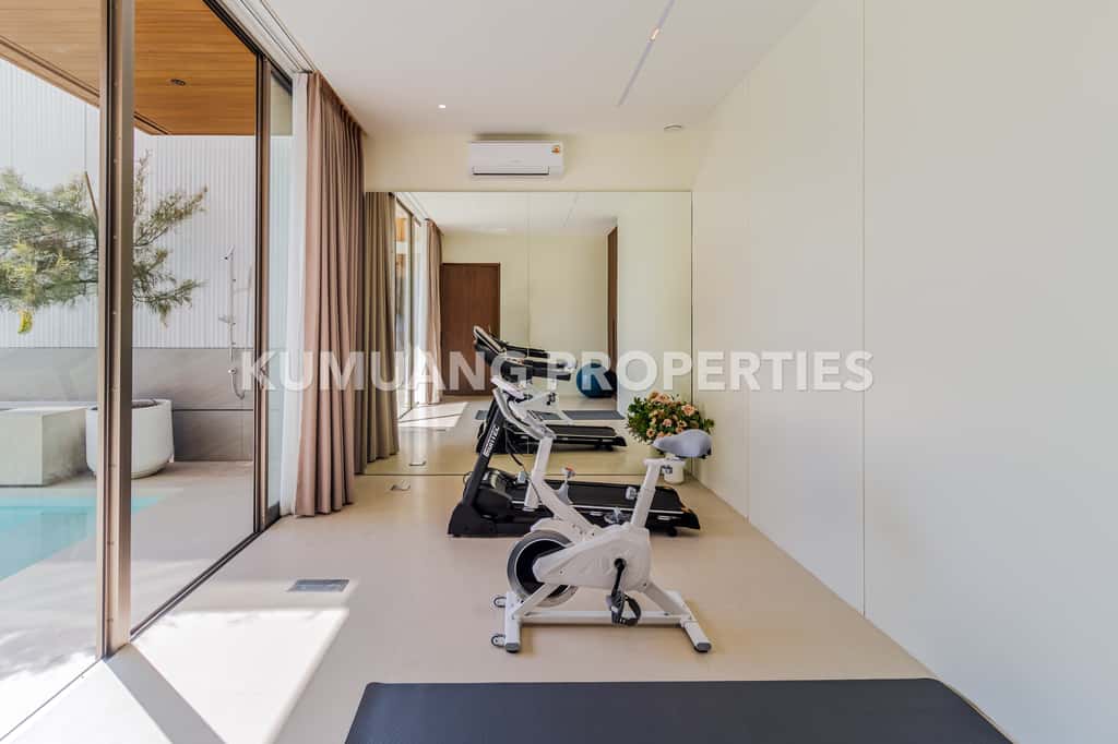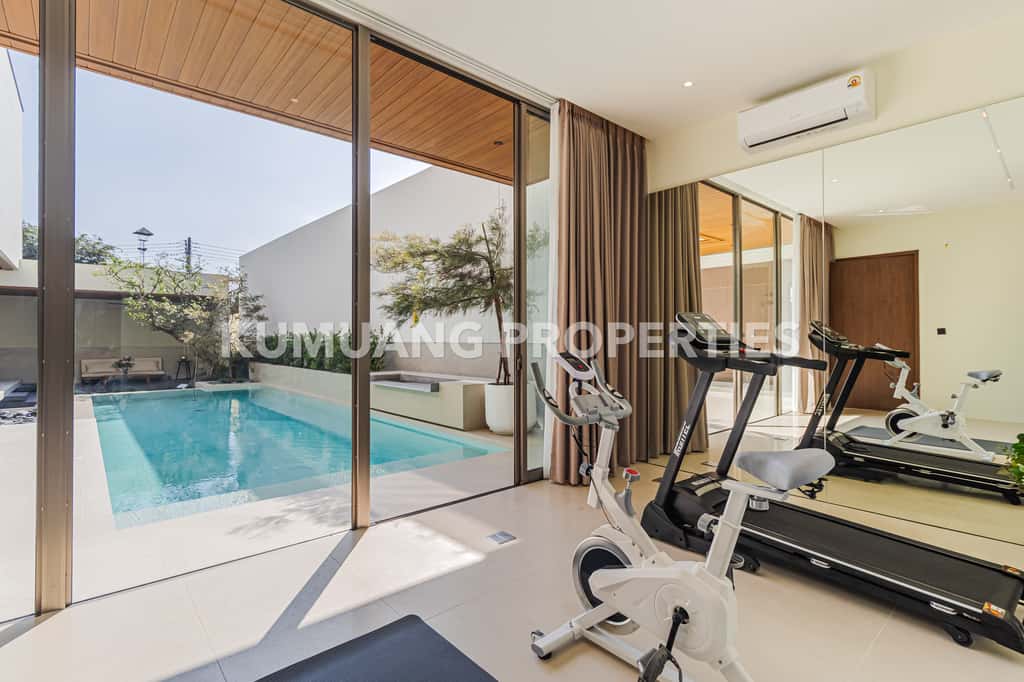 ห้องออกกำลังกาย มองเห็นสระว่ายน้ำ เพิ่มบรรยากาศการออกกำลังกายที่ผ่อนคลาย