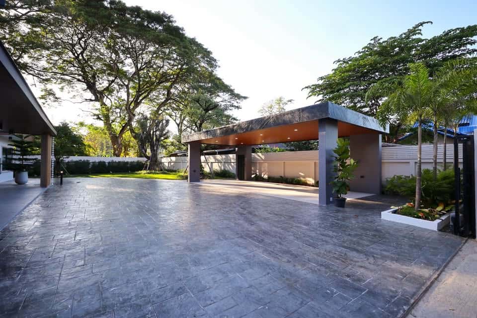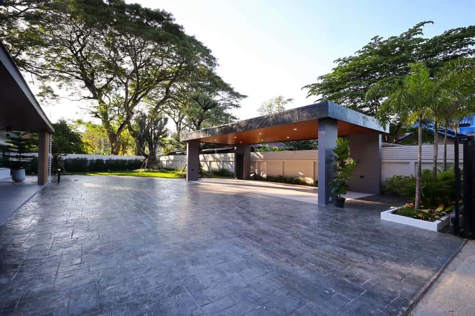พื้นที่จอดรถกว้างขวาง พร้อมสวนจัดแต่งอย่างสวยงาม