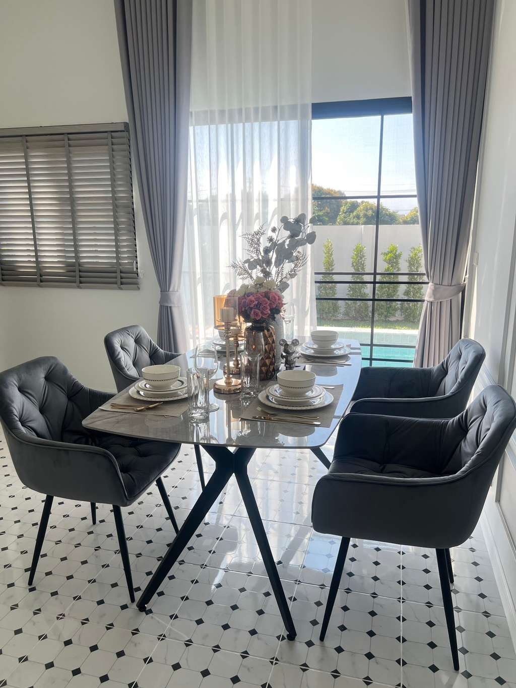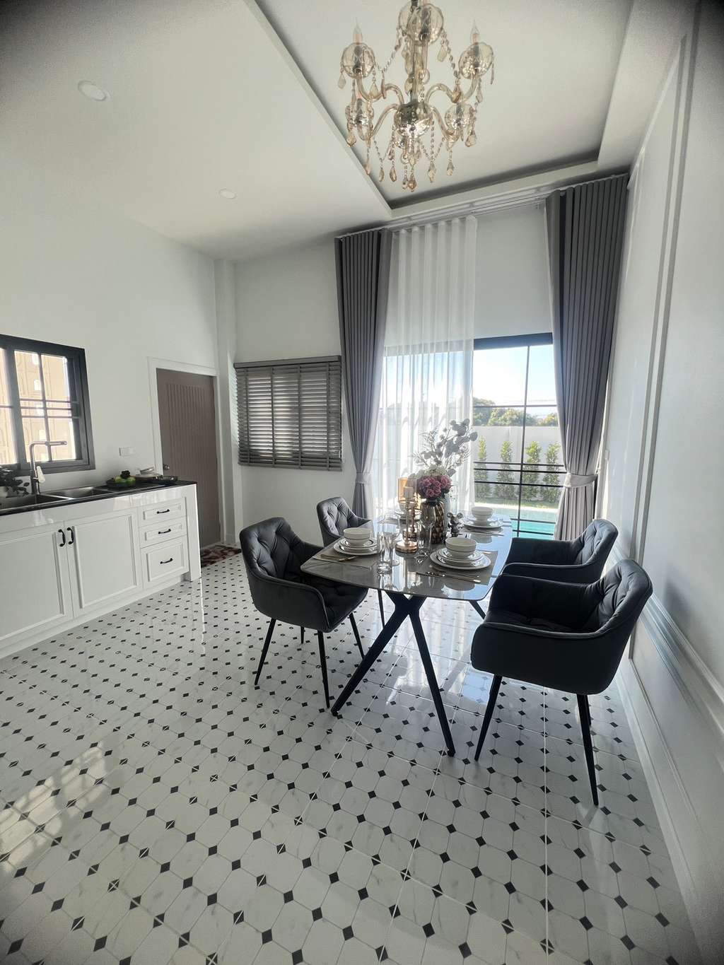 - ห้องครัวสามารถเปิดประตูรับวิวสระว่ายน้ำ