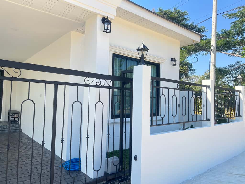 - ที่จอดรถ 2 คัน พร้อมพื้นคอนกรีตพิมพ์ลายสไตล์ยุโรป