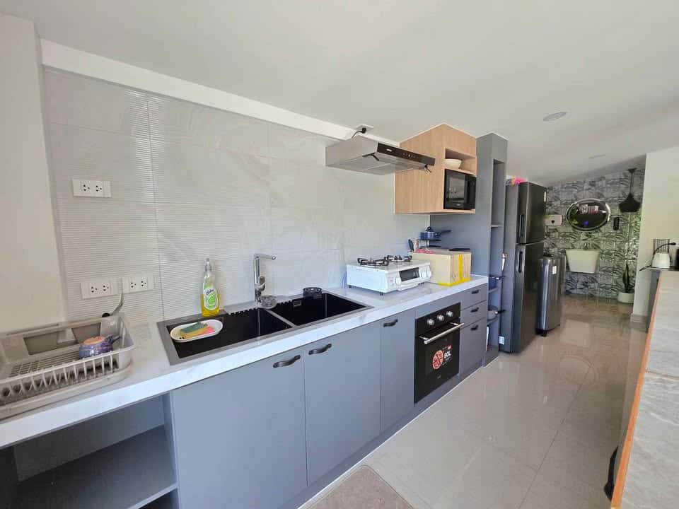 ห้องครัวครบชุด: เตาอบ, ไมโครเวฟ, ตู้เย็น, เครื่องซักผ้า