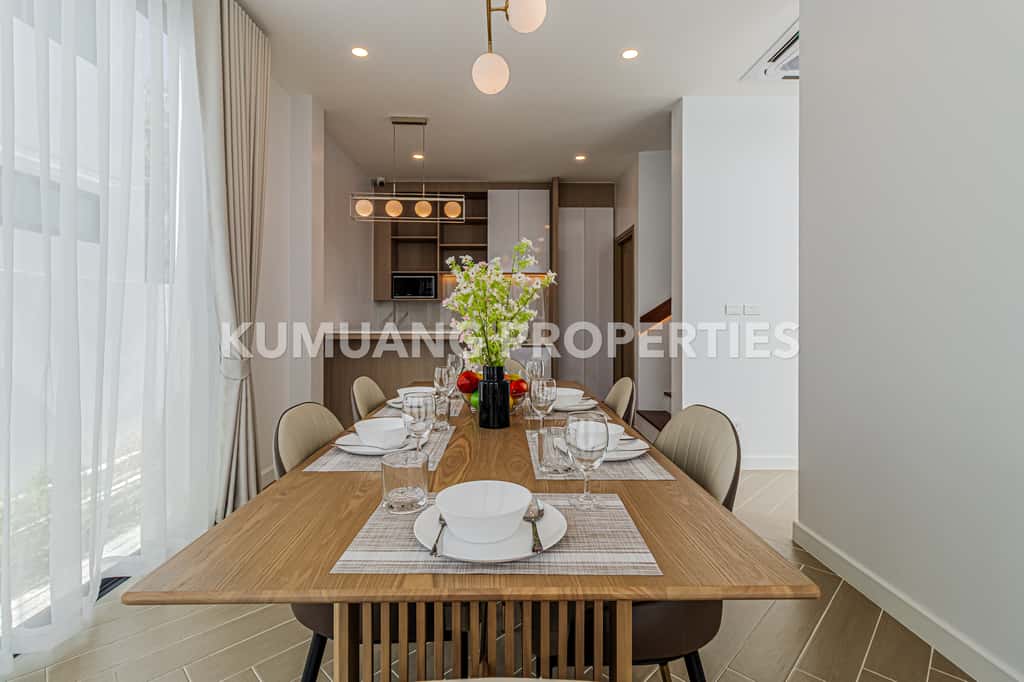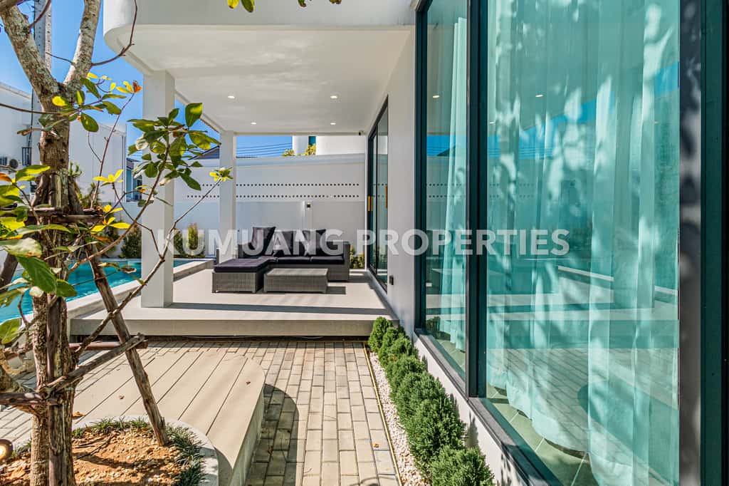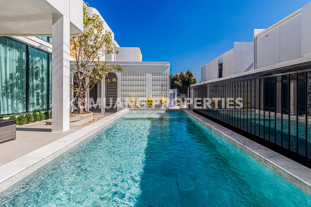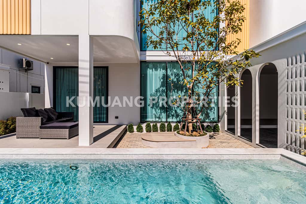 บ้านแต่ละหลังให้ความเป็นส่วนตัวและบรรยากาศร่มรื่น พร้อมสระว่ายน้ำส่วนตัว เหมาะสำหรับการพักอาศัยแบบครอบครัว