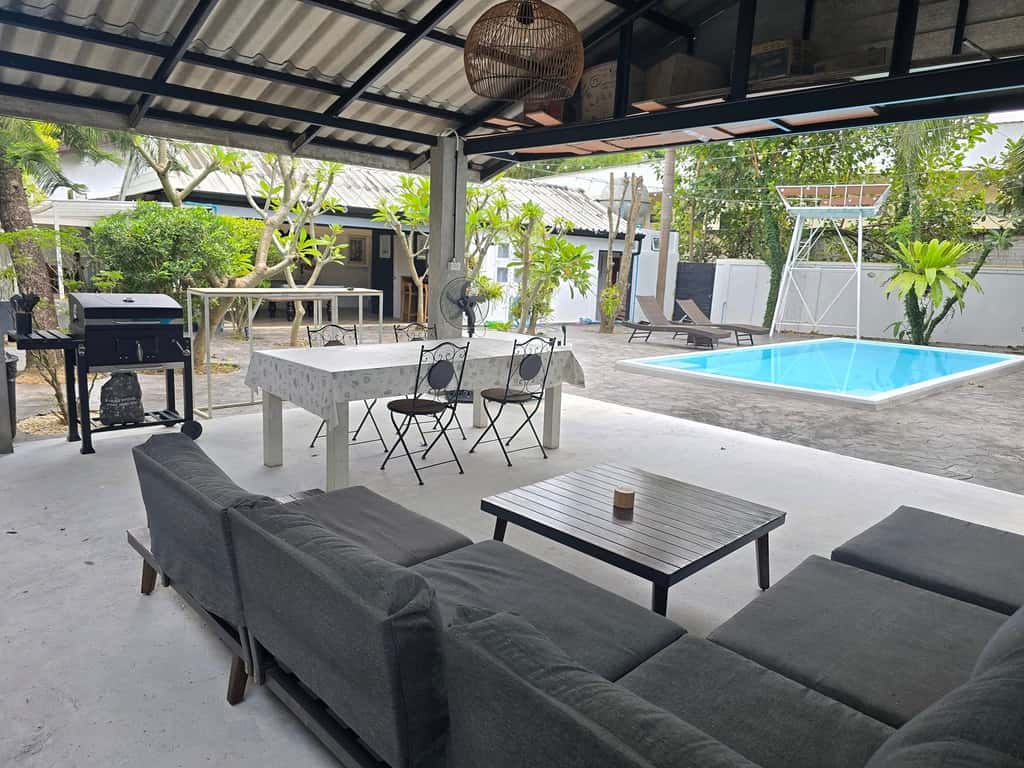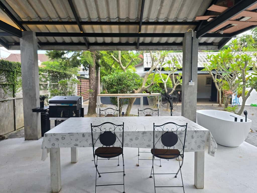 - สวนหลังบ้าน (มีชุดโต๊ะหินอ่อนไว้นั่งเล่น)