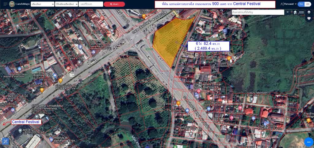 หน้ากว้างติดถนนสมโภชเชียงใหม่ 700 ปี ประมาณ 82 เมตร