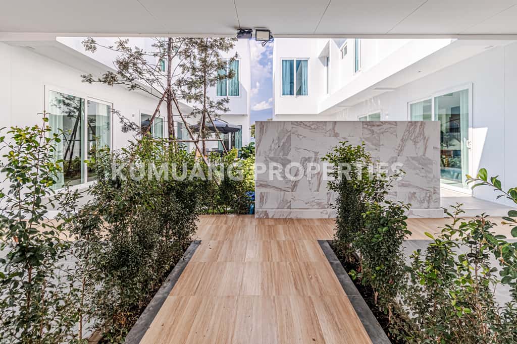• สระว่ายน้ำส่วนกลางกลางบ้าน พร้อมสวนตกแต่งสวยงาม