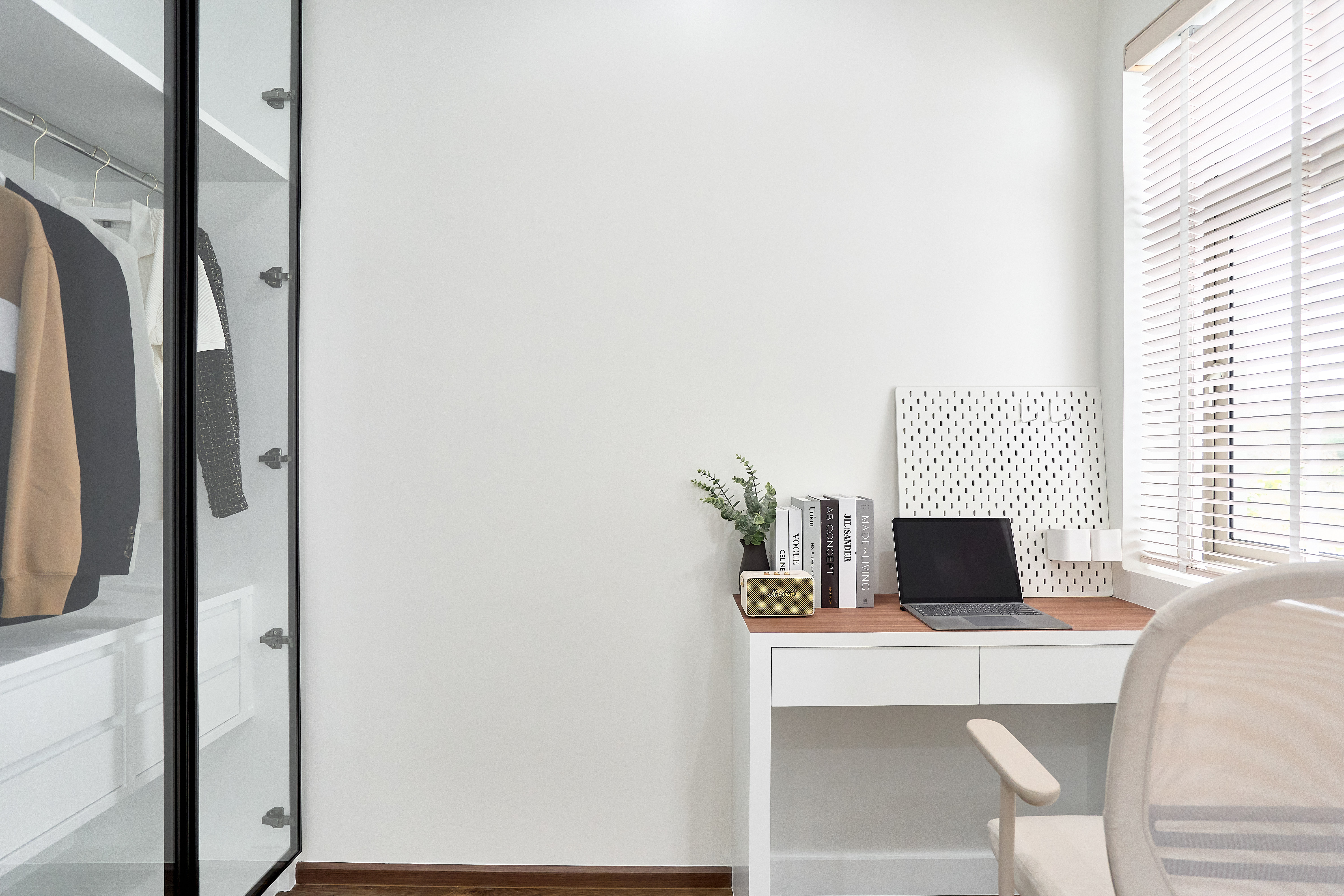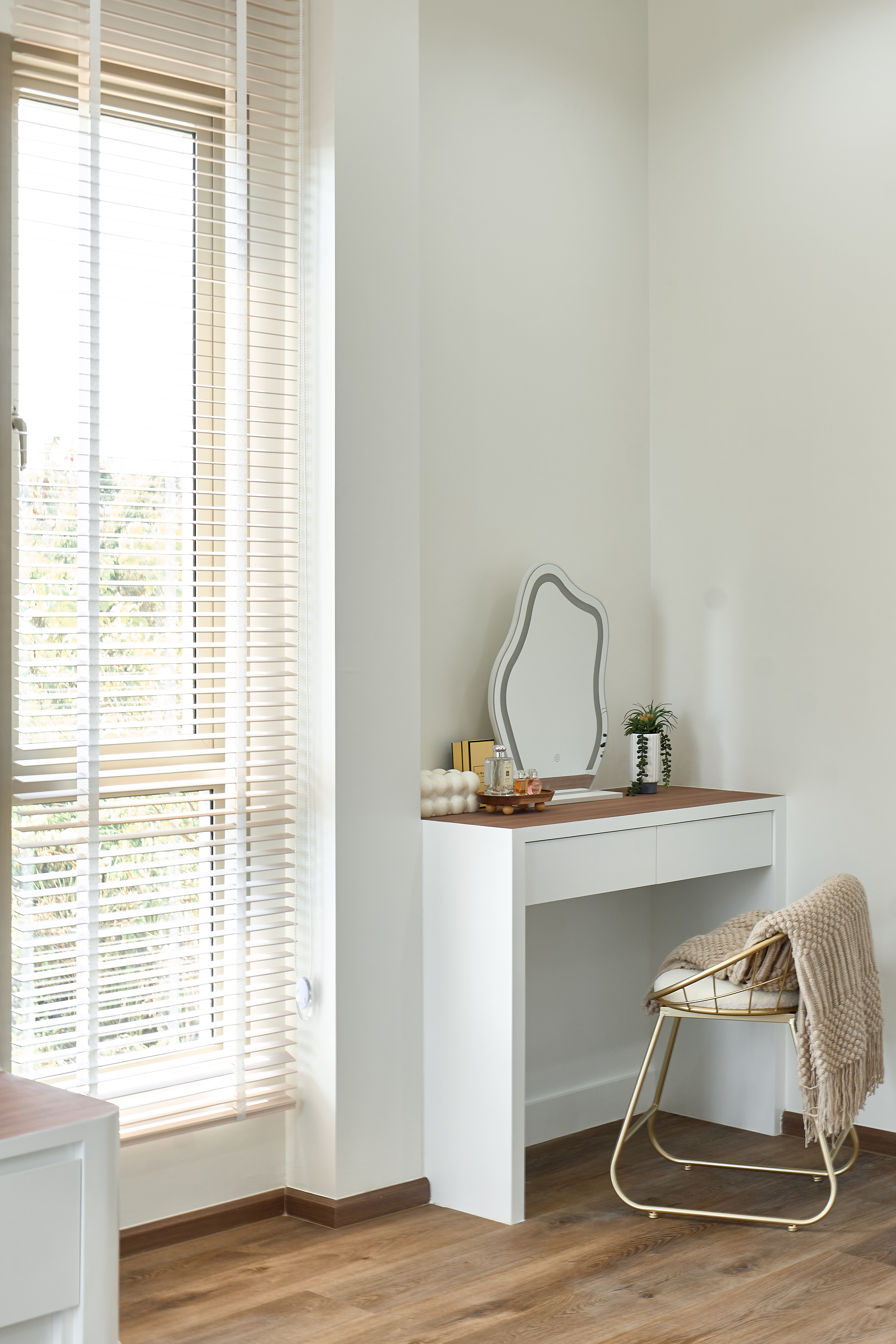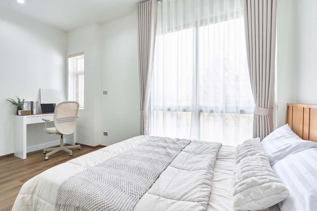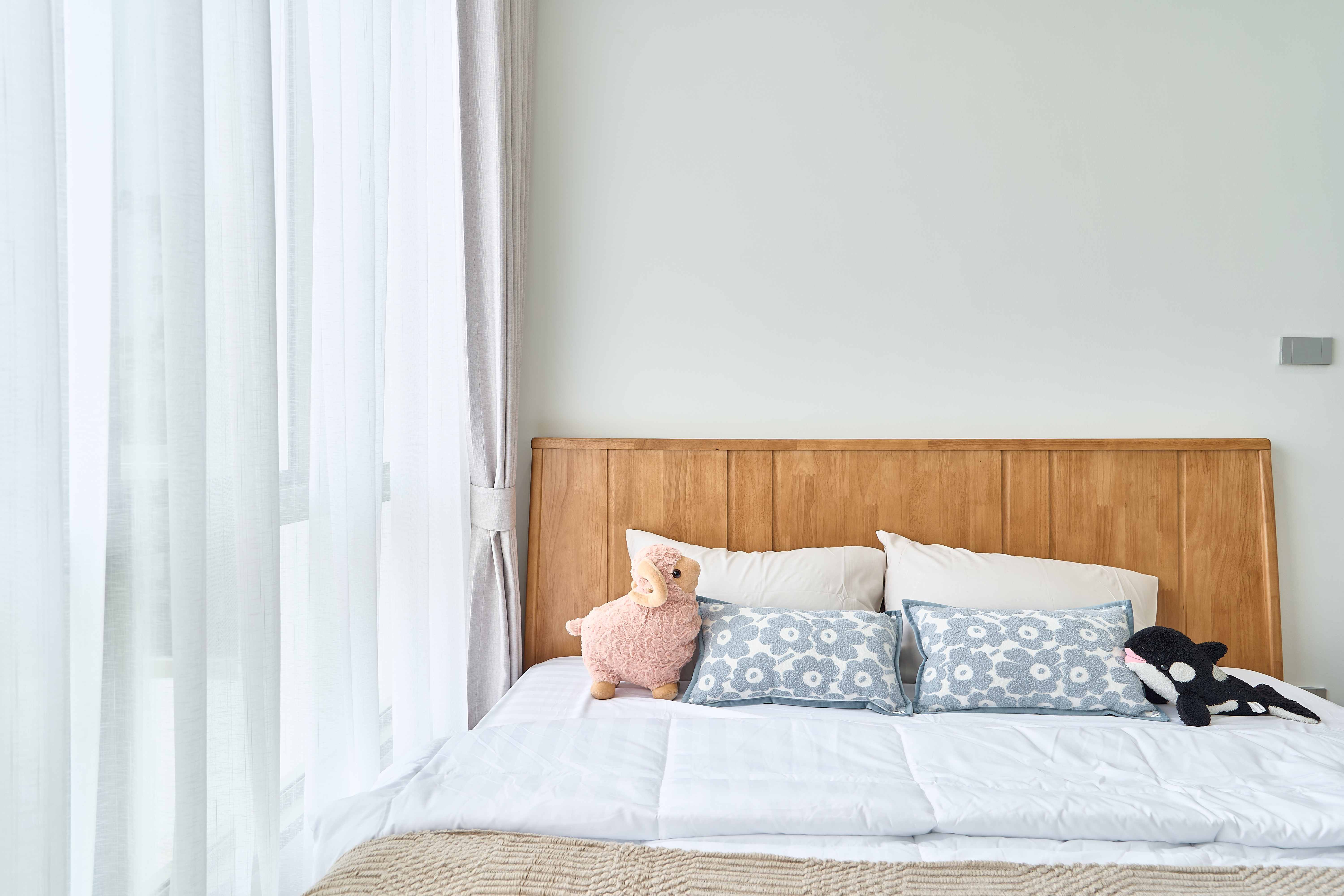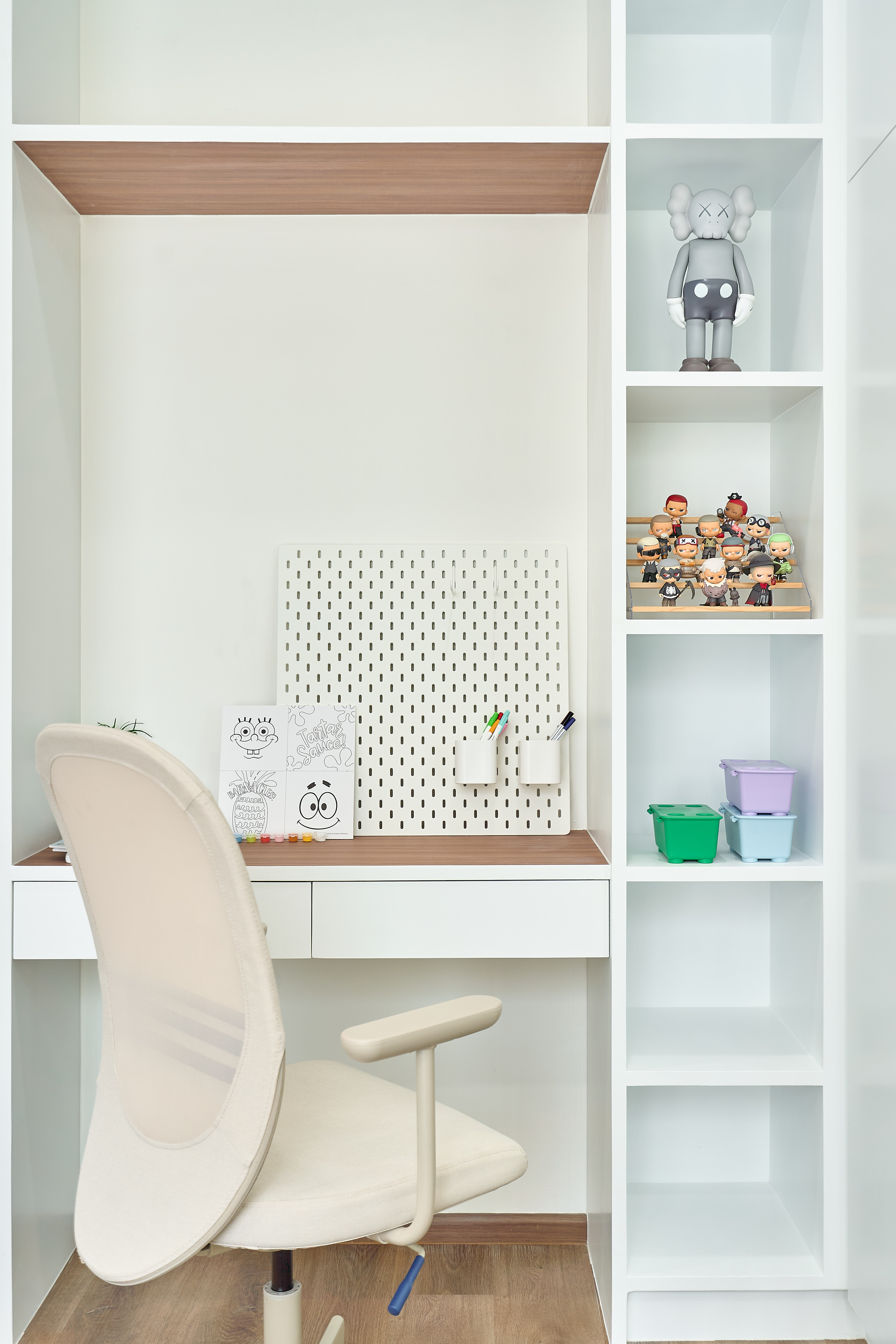 – ห้องนอนเด็ก Built-in ตู้และโต๊ะอ่านหนังสือ วิวสวนกลางบ้าน