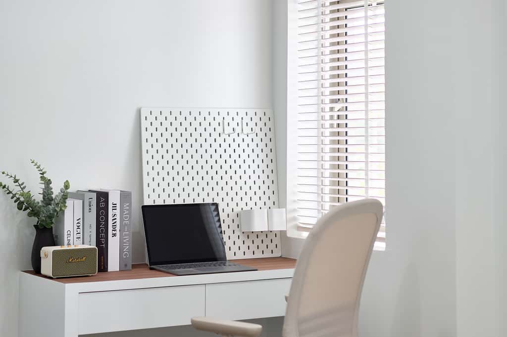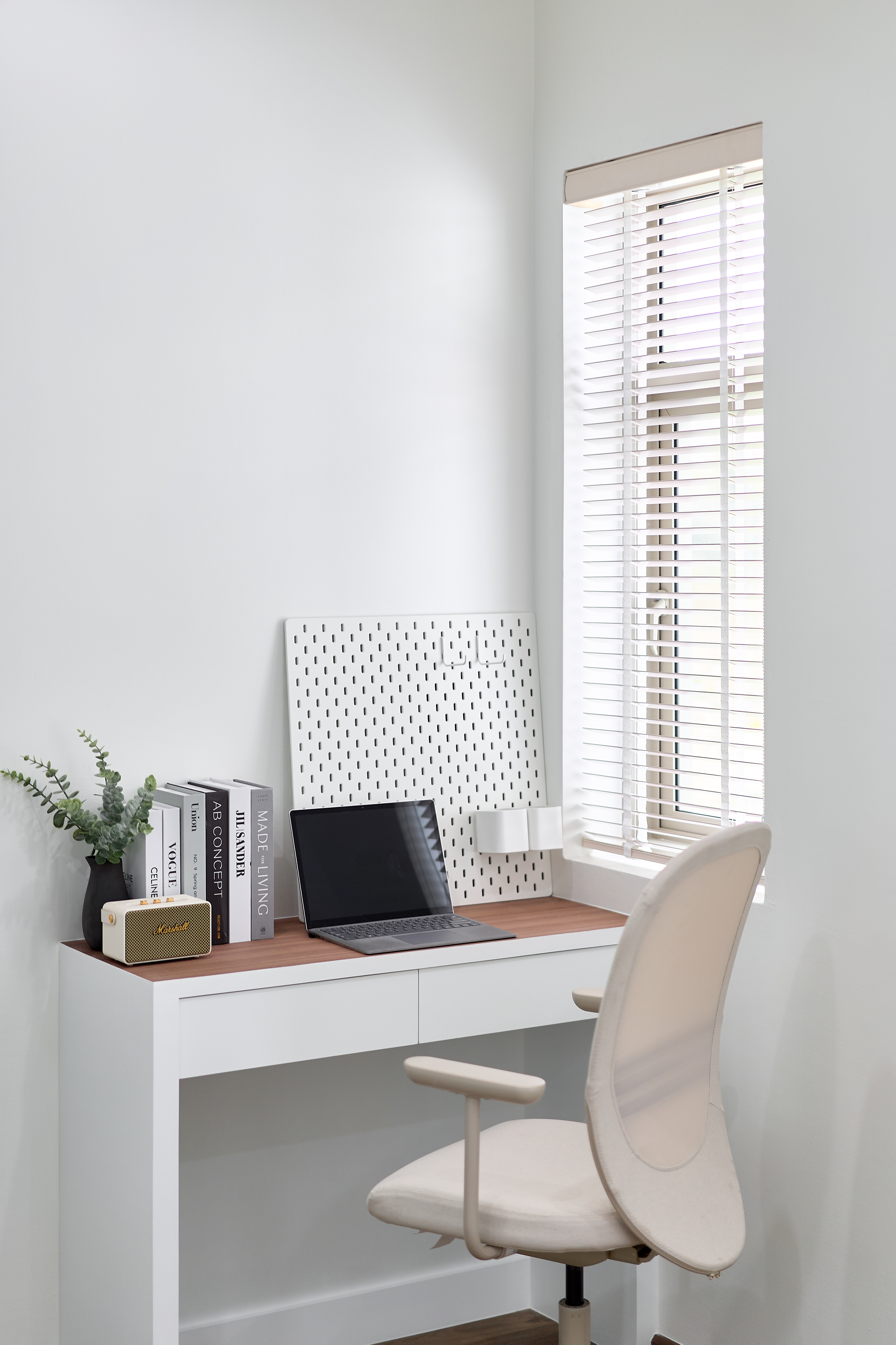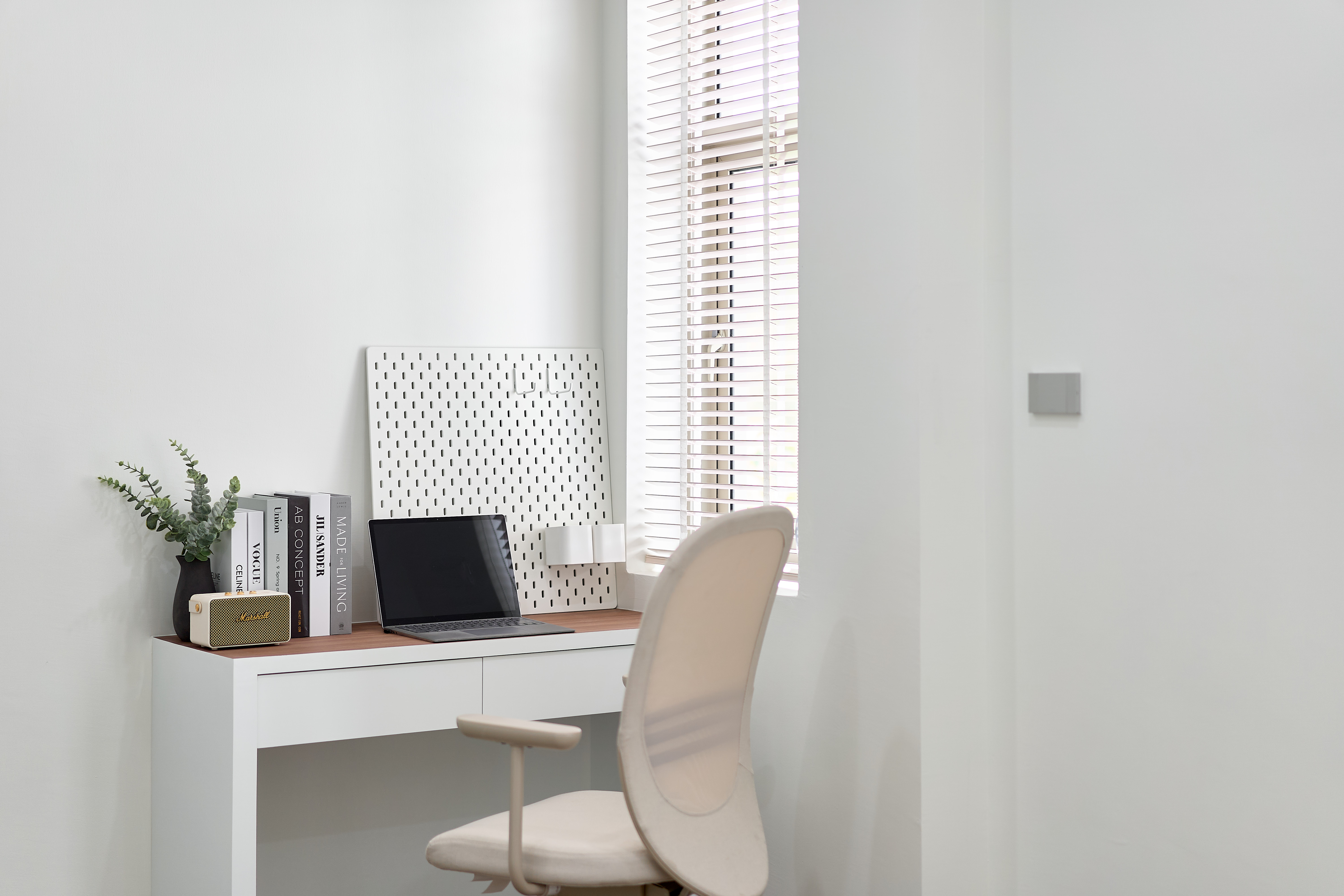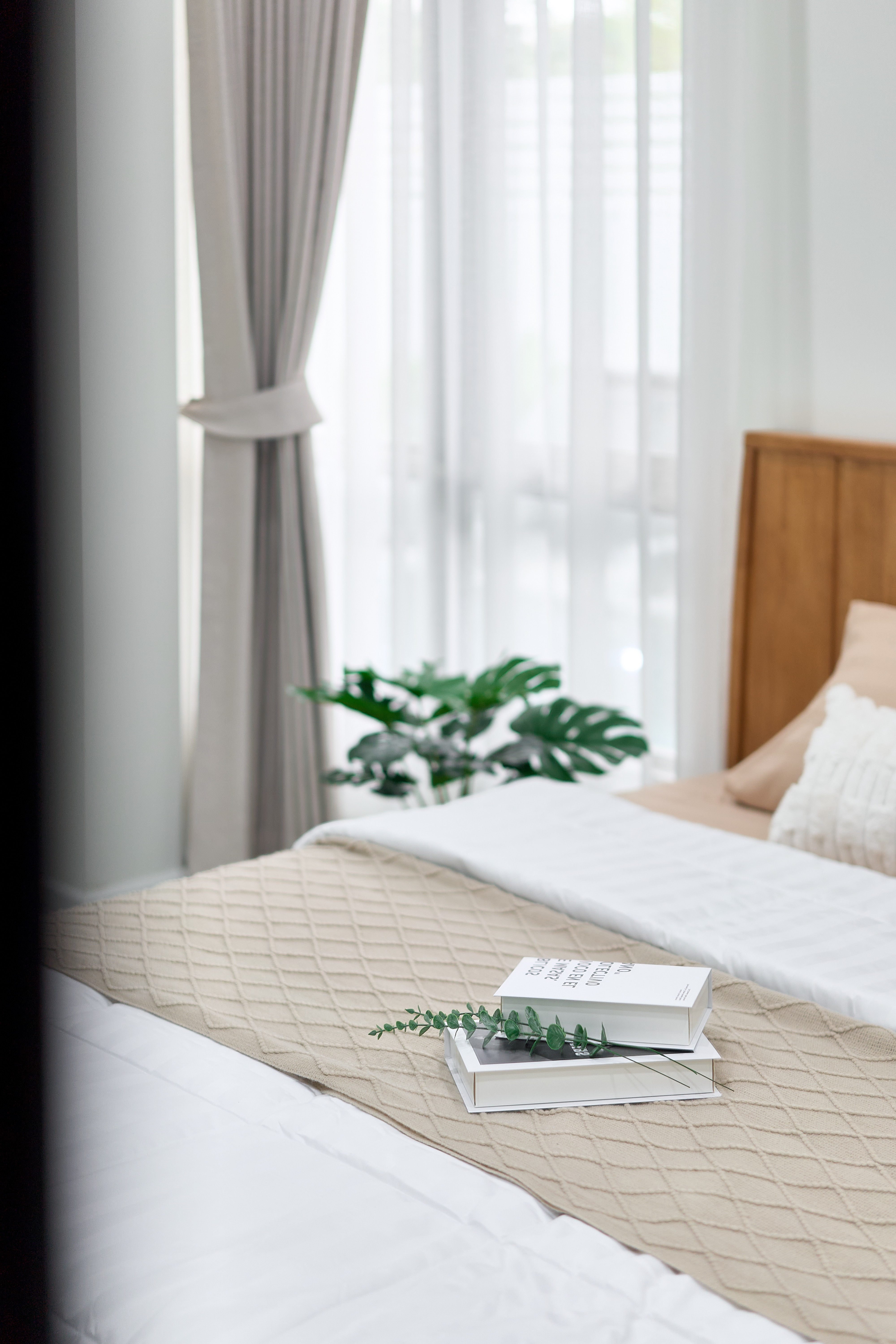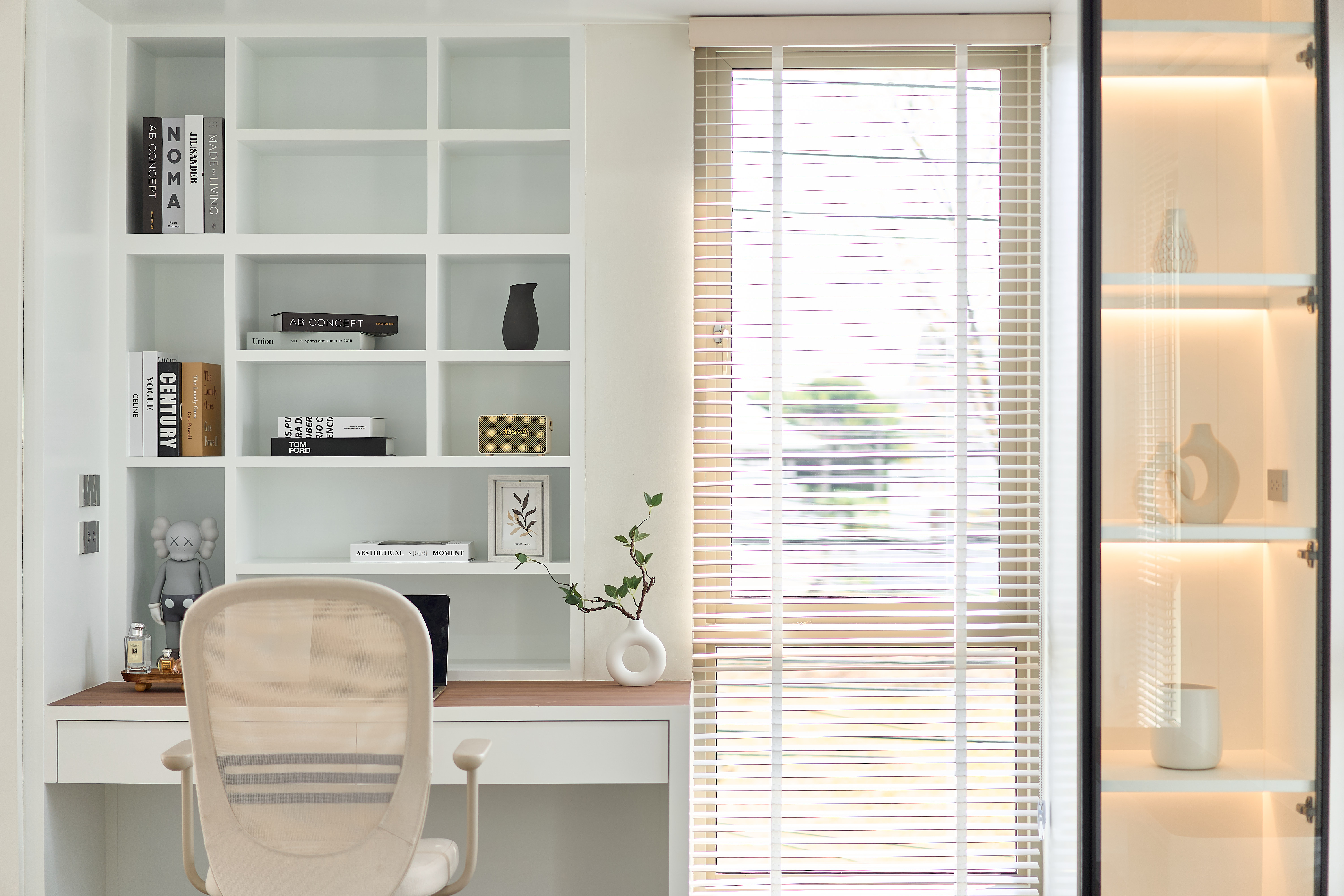 – ห้องนอนเด็ก Built-in ตู้และโต๊ะอ่านหนังสือ วิวสวนกลางบ้าน