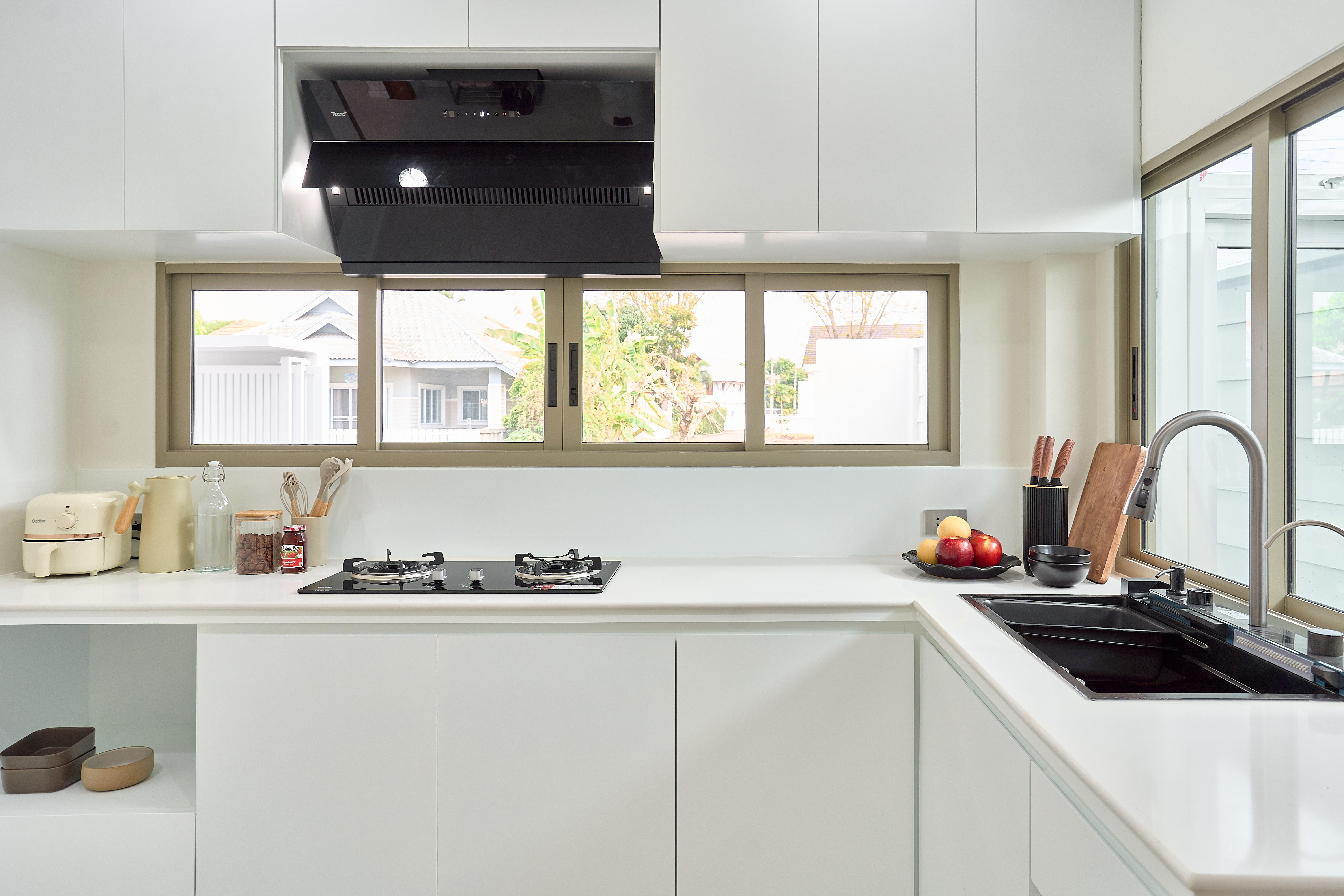 – ครัวครบชุด พร้อมตู้เย็น HITACHI 4 ประตู เตาอบ ไมโครเวฟ และฮูดดูดควัน