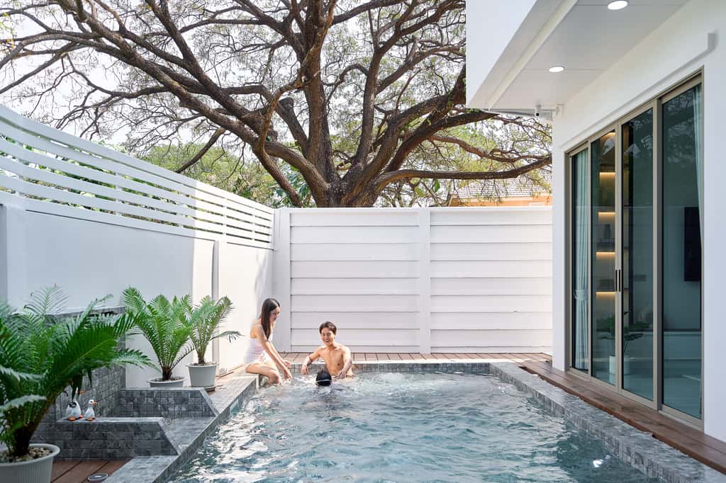 สระว่ายน้ำส่วนตัวระบบเกลือ พร้อม Jet Spa และ Steam