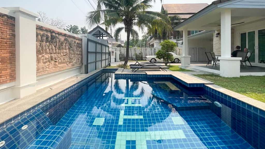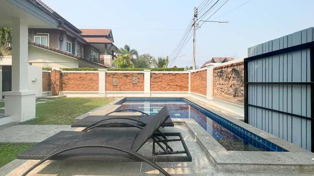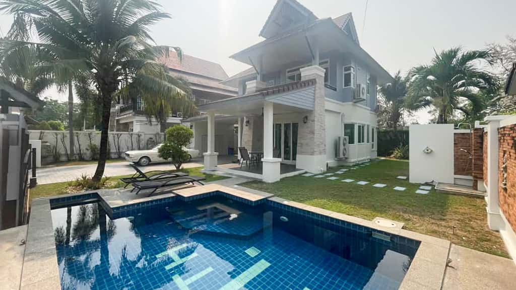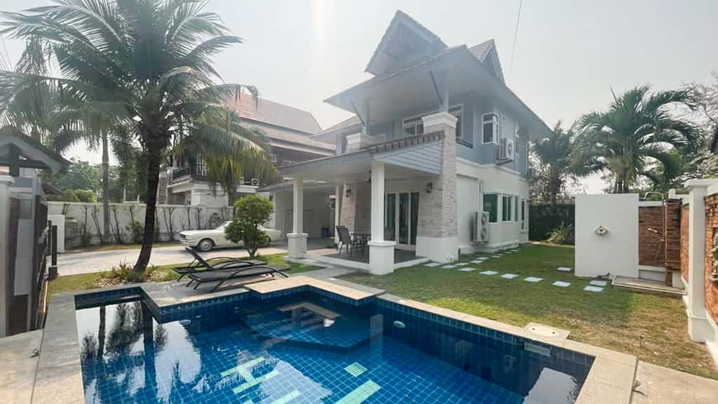 บ้านเช่าพร้อมสระว่ายน้ำส่วนตัว ในโครงการกุลพันธ์วิลล์ 9 พื้นที่กว้าง 120 ตารางวา บรรยากาศเงียบสงบ เหมาะสำหรับครอบครัว ใกล้เมืองเชียงใหม่ เดินทางสะดวก