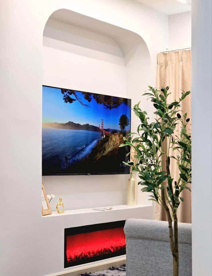 - บิ้วอินชั้นวางทีวี พร้อมเตาผิงไฟ