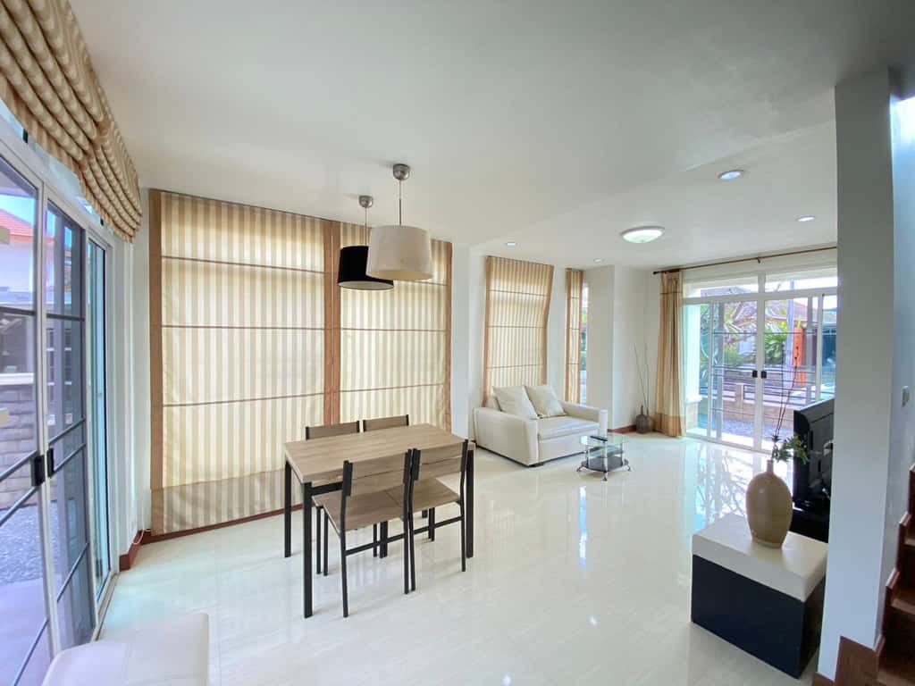 บ้านเดี่ยว 2 ชั้น โครงการ PATIO อำเภอสันทราย เชียงใหม่ บ้านบรรยากาศอบอุ่น พื้นที่กว้างขวาง เหมาะสำหรับครอบครัวหรือผู้ที่ต้องการความเป็นส่วนตัว พร้อมเข้าอยู่อาศัย