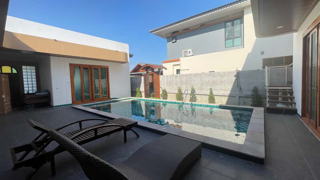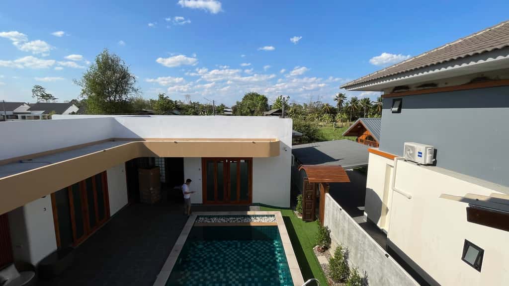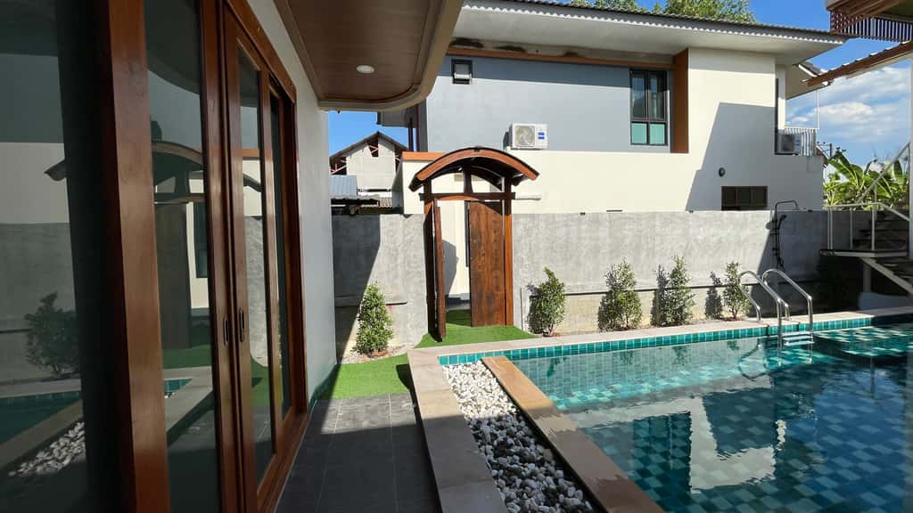 พูลวิลล่าขนาดใหญ่ บนทำเลศักยภาพโซน สารภี – ไชยสถาน เชียงใหม่ ออกแบบเป็นบ้าน 2 หลังเชื่อมติดกัน ให้ความเป็นส่วนตัว พร้อมพื้นที่ใช้สอยกว้างขวาง เหมาะสำหรับครอบครัวใหญ่ ผู้บริหาร ชาวต่างชาติ หรือผู้ที่ต้องการบ้านพักขนาดใหญ่ในเชียงใหม่