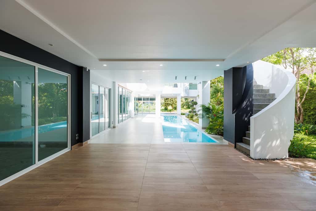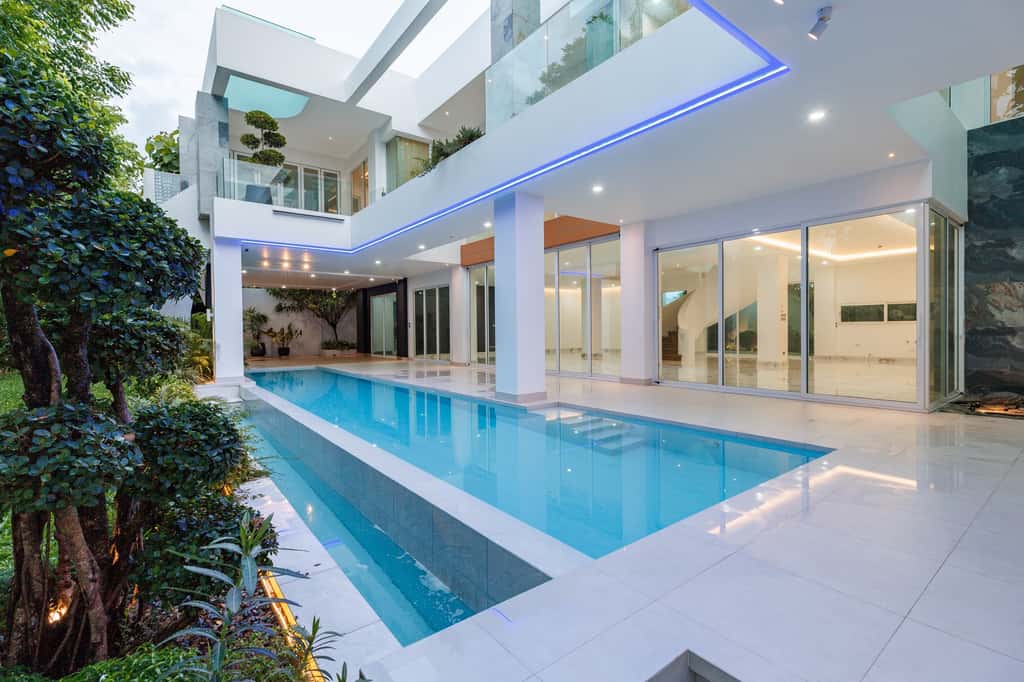 บ้านเดี่ยวขนาดใหญ่ ดีไซน์โมเดิร์น เปิดโล่ง โปร่งสบาย ด้วยกระจกบานใหญ่รอบทิศทาง รับแสงธรรมชาติเต็มที่