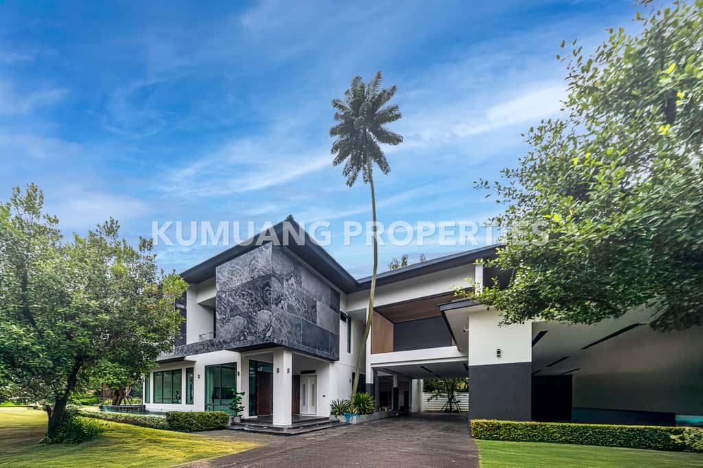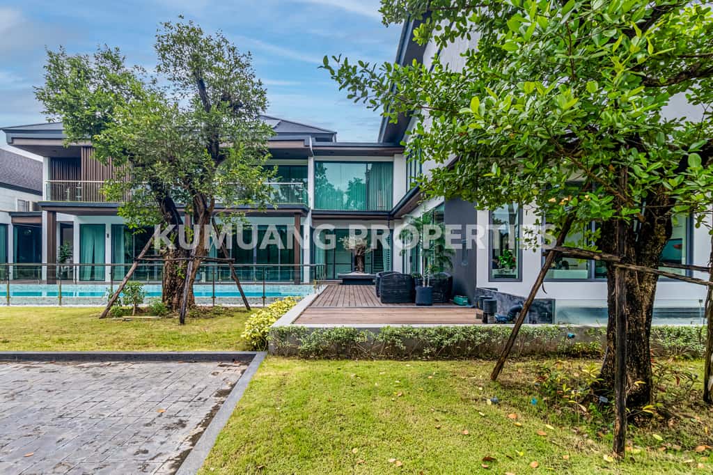 This contemporary style house boasts 5 bedrooms and 7 bathrooms, with a Nordic design aesthetic throughout. The house features a large banquet room, gym, and teak doors. The smart home system includes a digital door lock, and the interior is outfitted with imported luxury furnishings, including a premium grade sofa set and dining table. The appliances and utensils are also of the highest quality. The house boasts plenty of space and offers a beautiful garden view. Moreover, there is a beautiful salt system swimming pool for you to enjoy your moment outside. It is truly a luxurious living experience.
