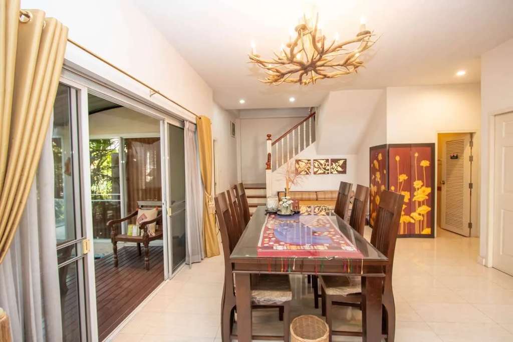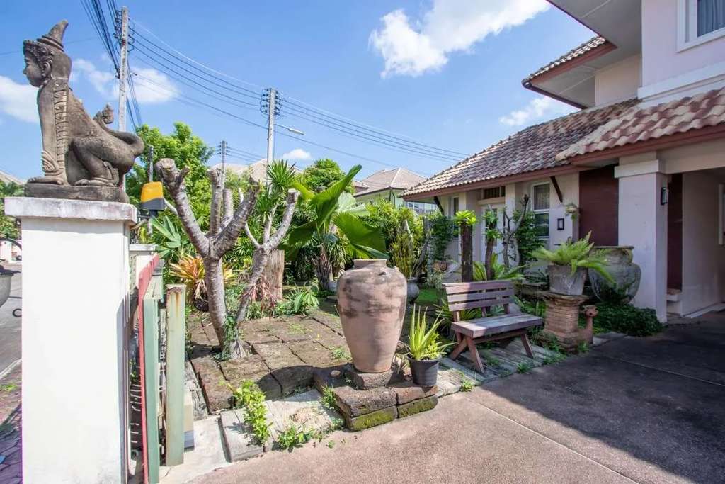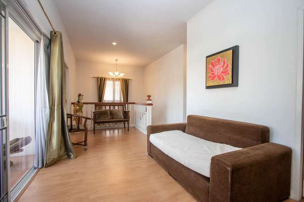 Two-story house with 3 bedrooms in Kulapan Ville 10 Village, located just 8 minutes from Big C, Chaisathan Subdistrict, Saraphi District, Chiang Mai Province. Fully furnished, and only 10 kilometers away from the airport.