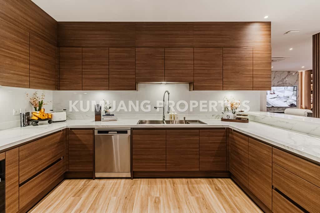 - บิ้วอินครัวไทย พร้อมอุปกรณ์เครื่องครัวครบครัน เช่น เตาแก๊ส ที่ดูดควัน และซิงค์ล้างจาน