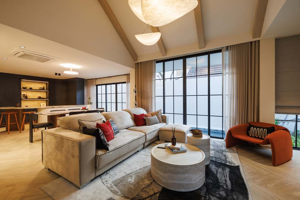- Open Plan Design – Living-Dining-Kitchen เชื่อมต่อกันอย่างลงตัว