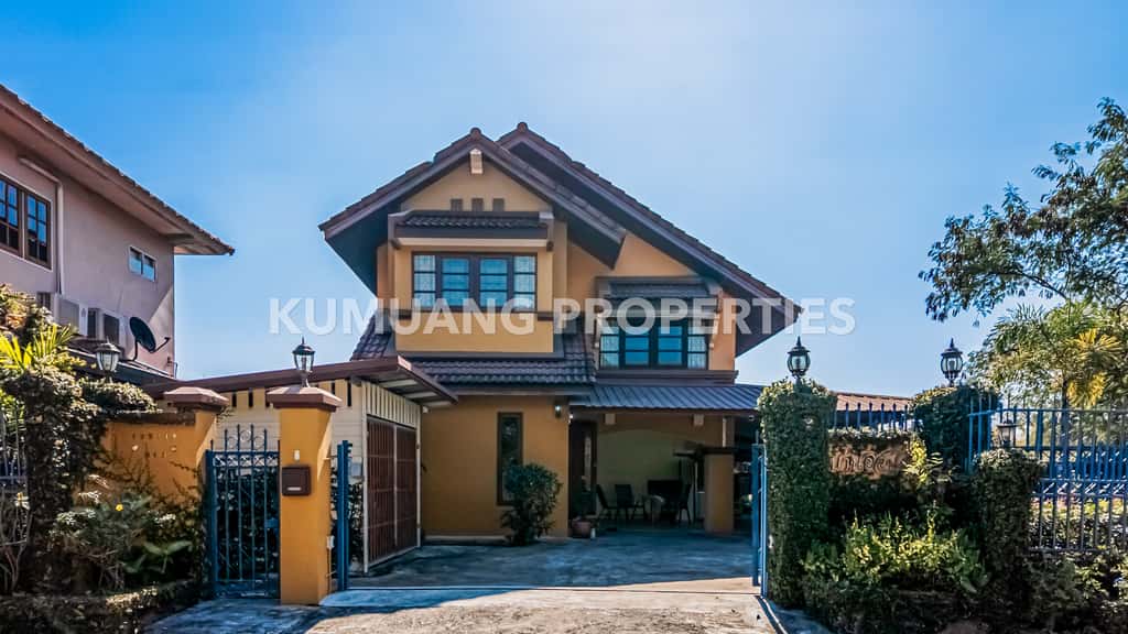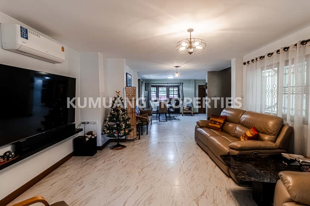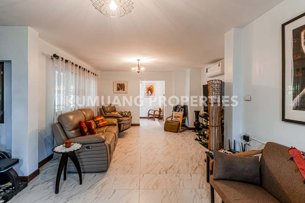 บ้านเดี่ยว 2 ชั้น ตั้งอยู่ในย่านที่อยู่อาศัย เงียบสงบ ใกล้สนามบินนานาชาติเชียงใหม่ 10 นาที 3.4 กิโลเมตร ร่มรื่นน่าอยู่