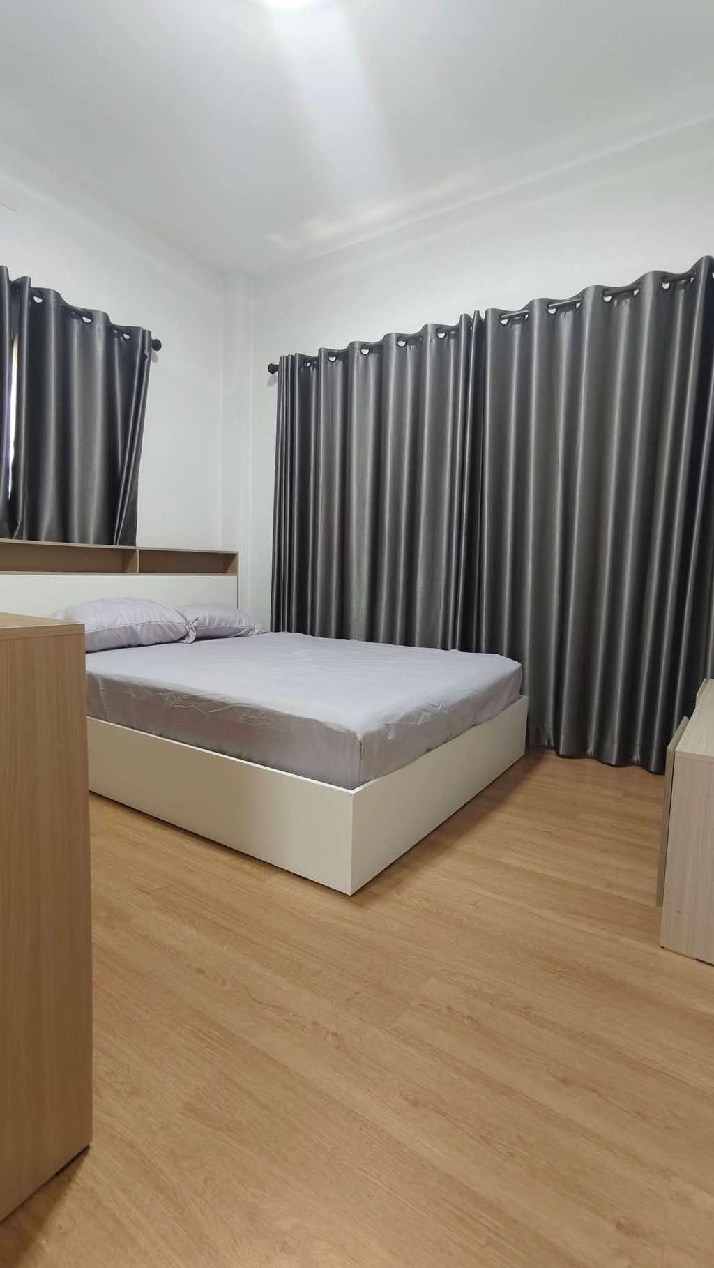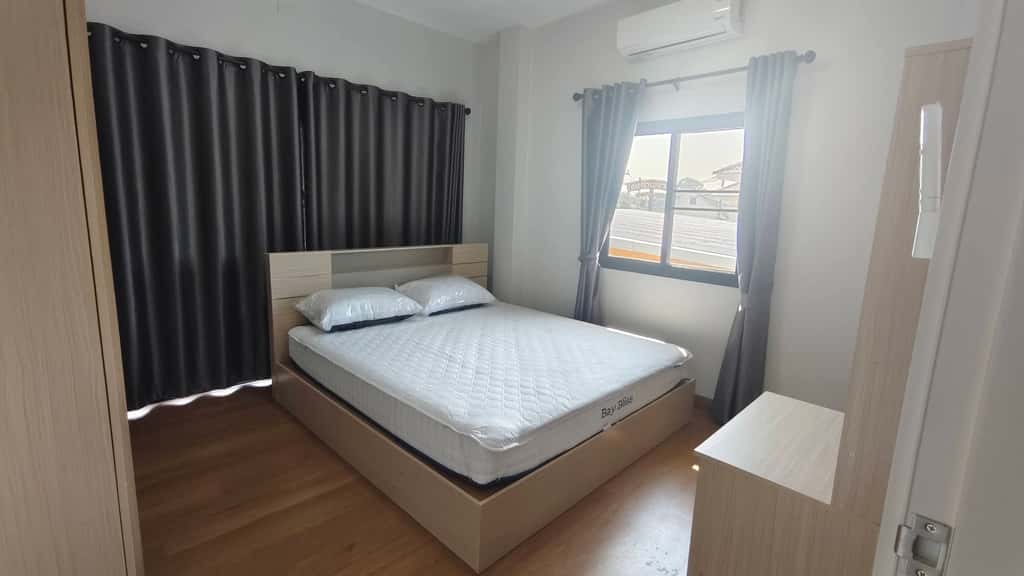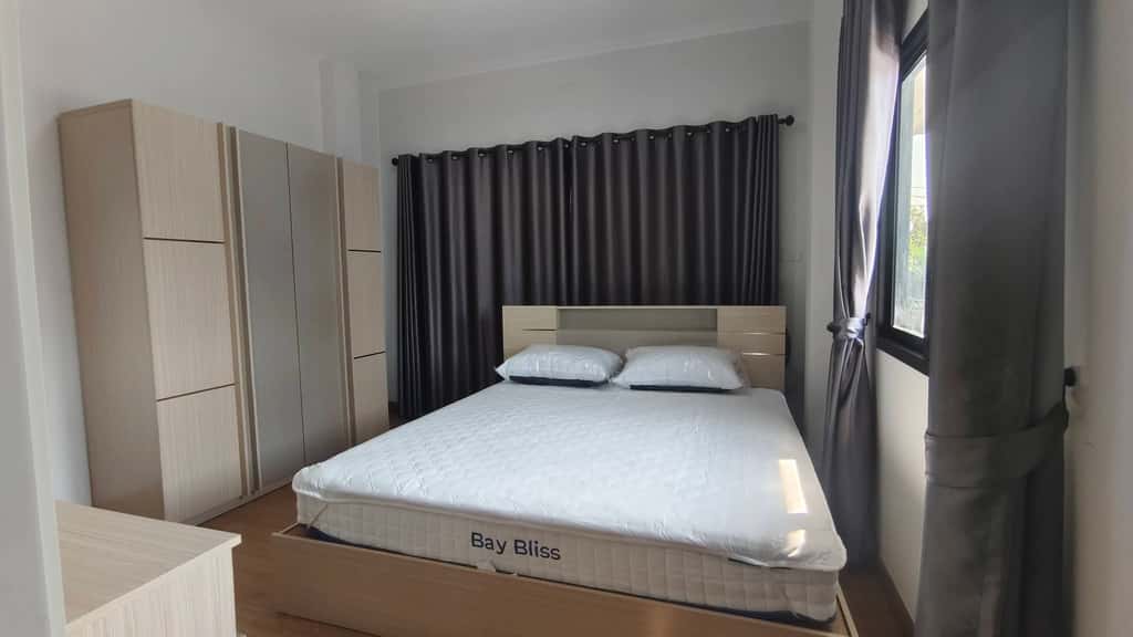 ห้องนอนมีเตียง ตู้ และโต๊ะเครื่องแป้ง 2 ห้อง (อีก 1 ห้องสามารถจัดเพิ่มได้)