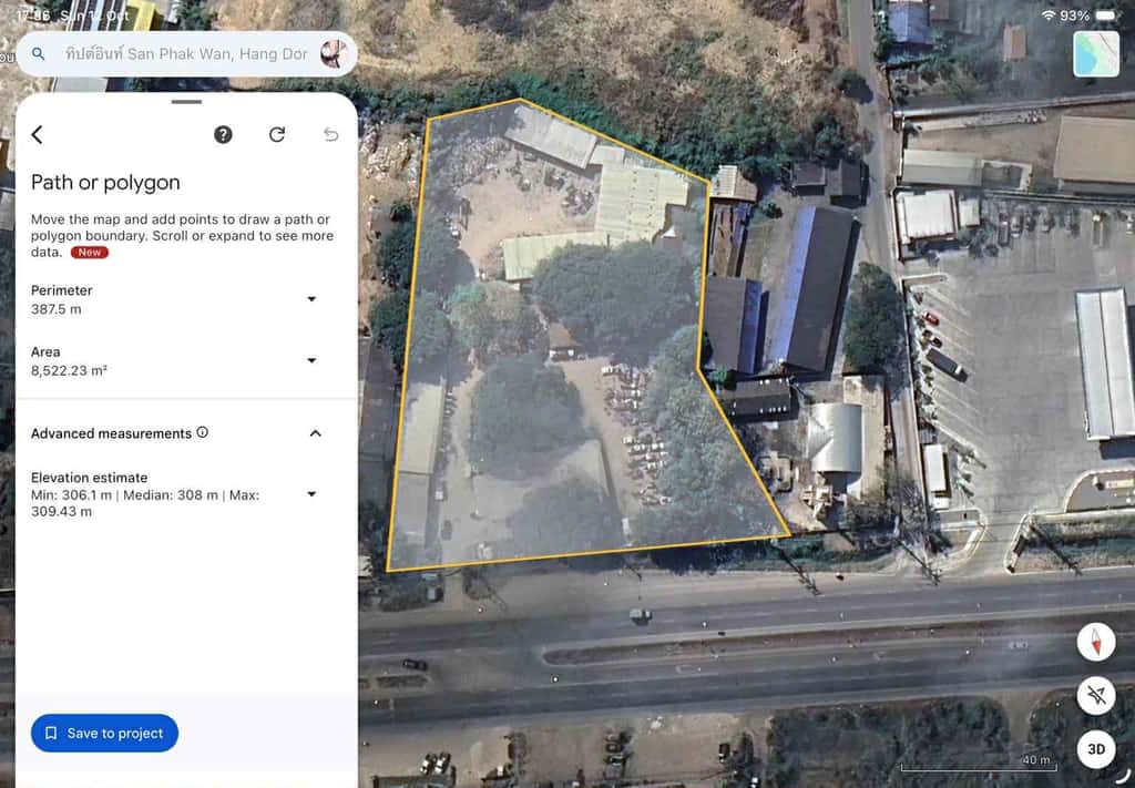 หน้ากว้างประมาณ 93 เมตร