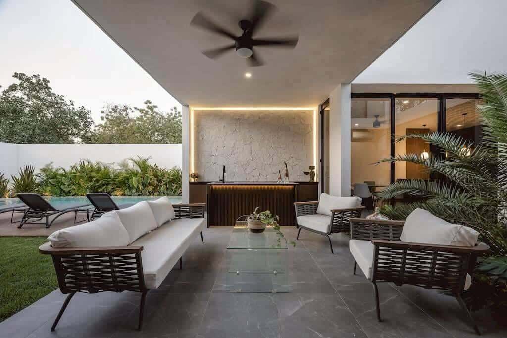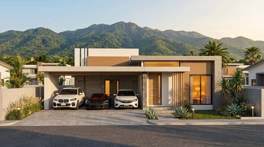 A single-storey home featuring a stylish modern design with a warm, cozy feel