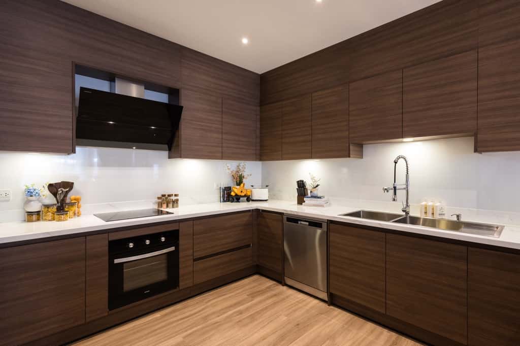 - บิ้วอินครัวไทย พร้อมอุปกรณ์เครื่องครัวครบครัน เช่น เตาแก๊ส ที่ดูดควัน และซิงค์ล้างจาน